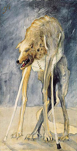Alte Hyäne, Aquarell und Bleistift auf Batist auf Papier, 48 x 90 cm, in Privatbesitz