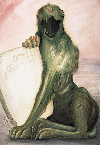 Der lapidare Löwe, Aquarell mit Dammar auf Papier,
