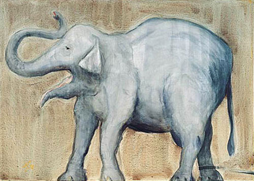 Maya, Aquarell und Acryl mit Dammar auf Baumwolle, 140 x 100 cm